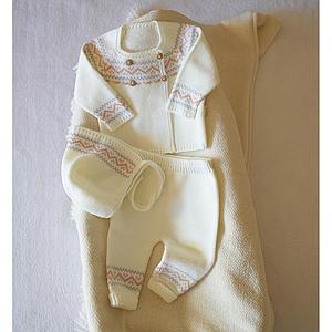 Conjunto en dralon/ hilo de algodón VENETO en marfil con detalles en rosa viejo Talle RN